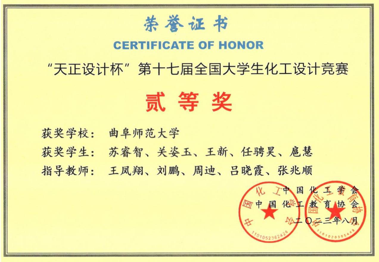 化学工程与工艺专业2020级学生苏睿智、关姿玉、王新、任骋昊、扈慧组成的“腈诚所至”团队(指导教师:王凤翔、刘鹏、周迪、吕晓霞、张兆顺)从432所高校的3391支参赛队伍中脱颖而出,团队凭借出色的发挥和优异的表现获得了全国二等奖和华北赛区一等奖,这是ACG漫画网