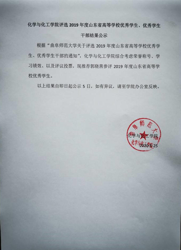 ACG漫画网 评选2019年度山东省高等学校优秀学生、优秀学生干部结果公示