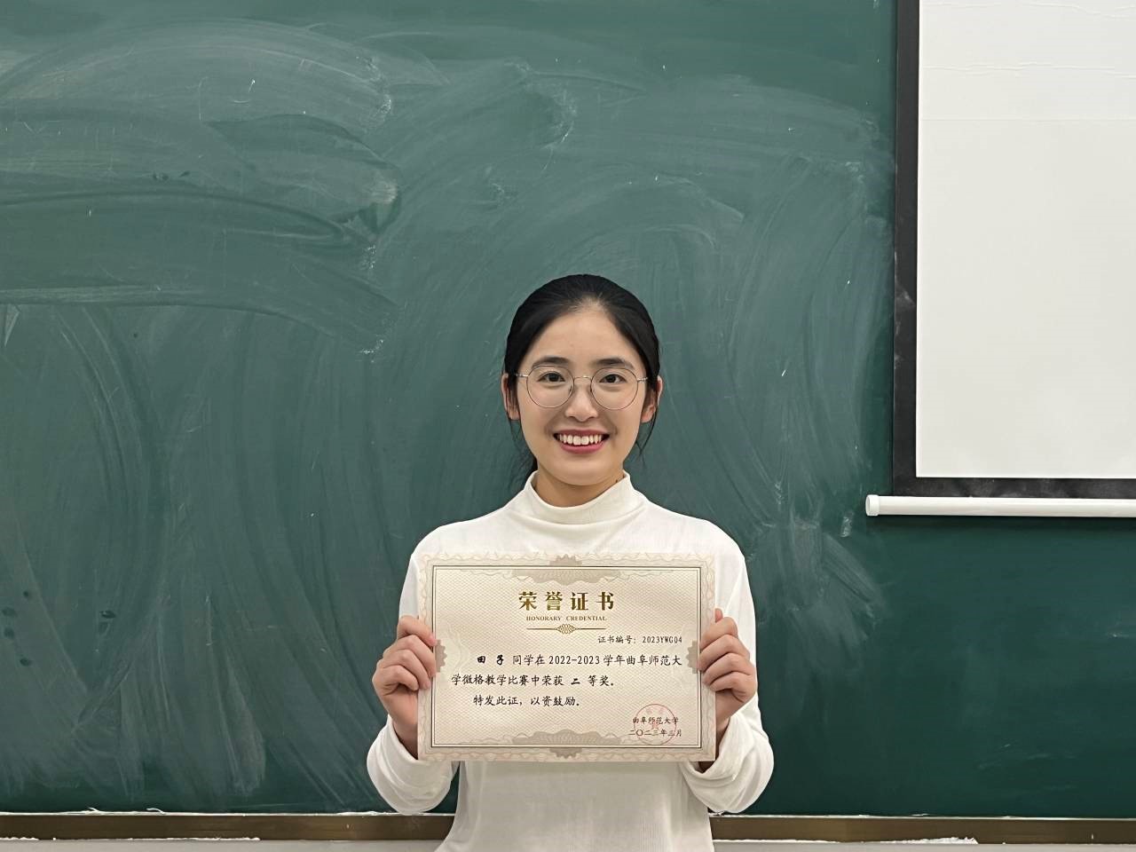 2021级教育硕士研究生田子在本次比赛中荣获佳绩。