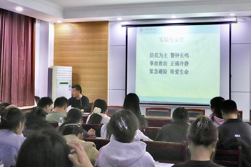 于226会议室举办实验室安全培训主题讲座。本次讲座由辅导员夏玉鑫主持,实验中心办公室主任李言信老师主讲,2024级全体研究生参加。