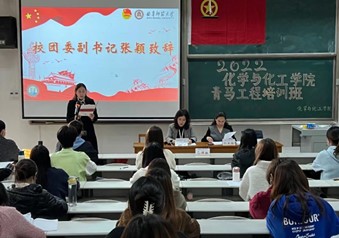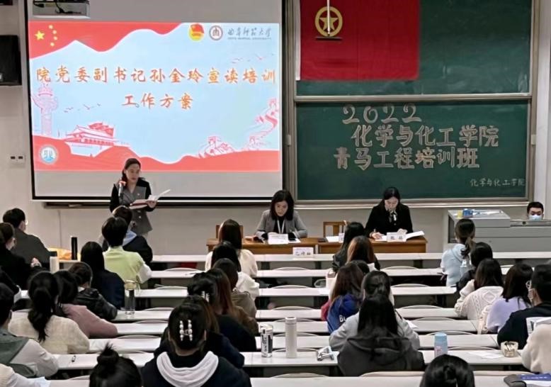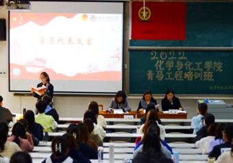 2022-2023学年青马工程培训工作方案,勉励同学们严格落实培训工作方案中的各项要求。最后,学员代表卢容钰发言,并代表参与培训的学生干部做出郑重承诺,展现出新时代青年坚定理想信念。
