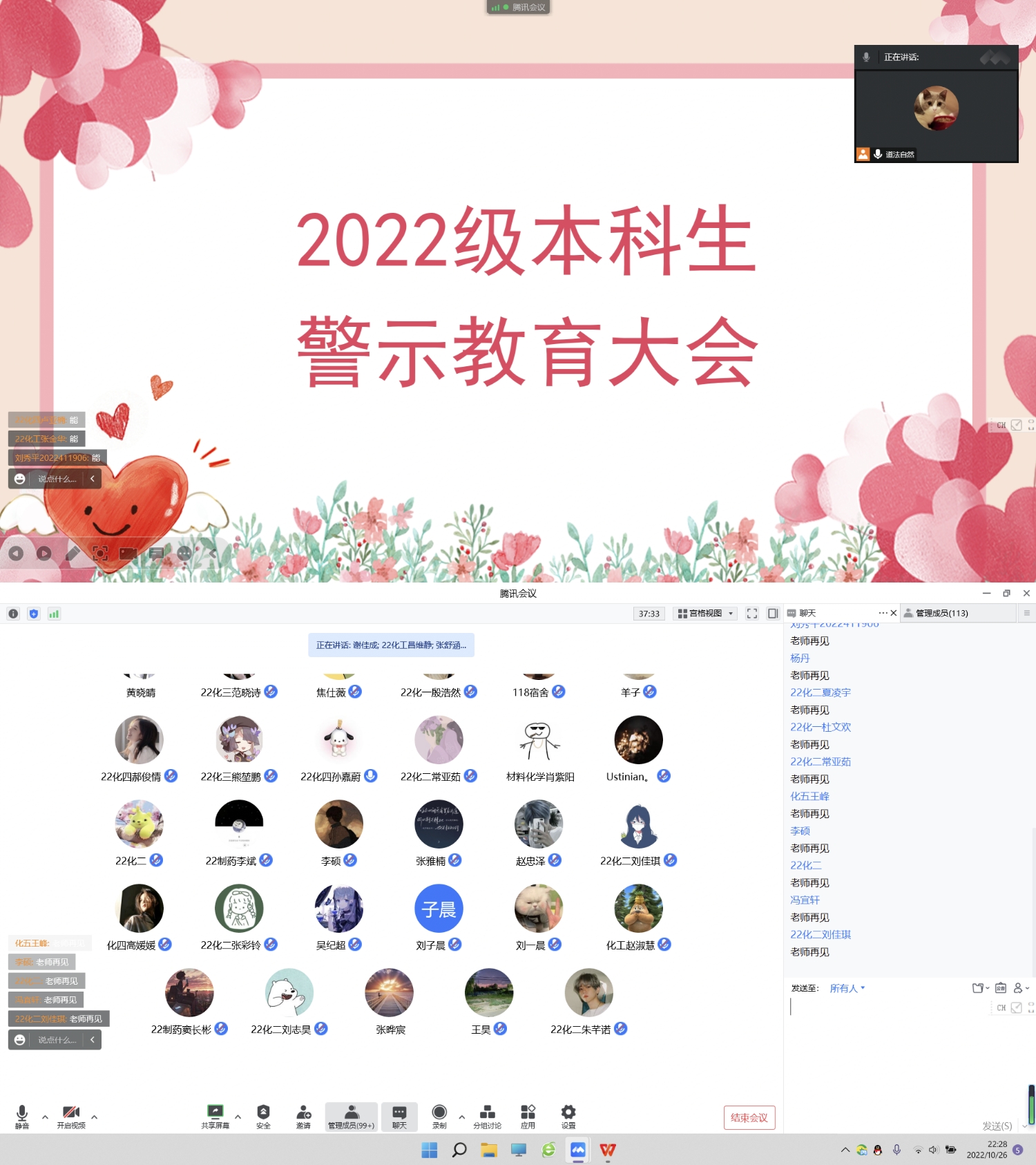 会议伊始,各位辅导员老师向同学们介绍了当前属地疫情的严峻形势,叮嘱同学们非常时期要严格遵守属地和学校防疫政策。随后,老师们通过学校实际案例向同学们强调全体学生要严格遵守学校各项规章制度。同时,老师们也针对线上教学提出了建议,帮助学生提高学习效率,摆脱懒散的学习态度。最后,各辅导员老师共同向同学们表达有困难第一时间联系辅导员老师,并为同学们加油打气。