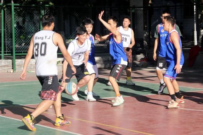 男篮比赛率先开始。场上风雨变幻,场外呼声震天。上半场,1号张美东运球过半场,踏进三分线一步出手球进,以一个中距离打开局面。接着,7号殷凯打中锋位置,连续快攻入篮下得分,瞬间将场上的气氛推到了高潮。化院男篮队员们配合默契,攻势如潮,守势稳健,逐渐掌握比赛主导权。上半场结束,化院男篮以26:19的比分领先生科男篮。下半场开始,对方开奋力追平,比赛进入白热化阶段。比赛尾声,化院男篮因战略失误,被对方反超,最终以一分之差惜败生命科学学院。