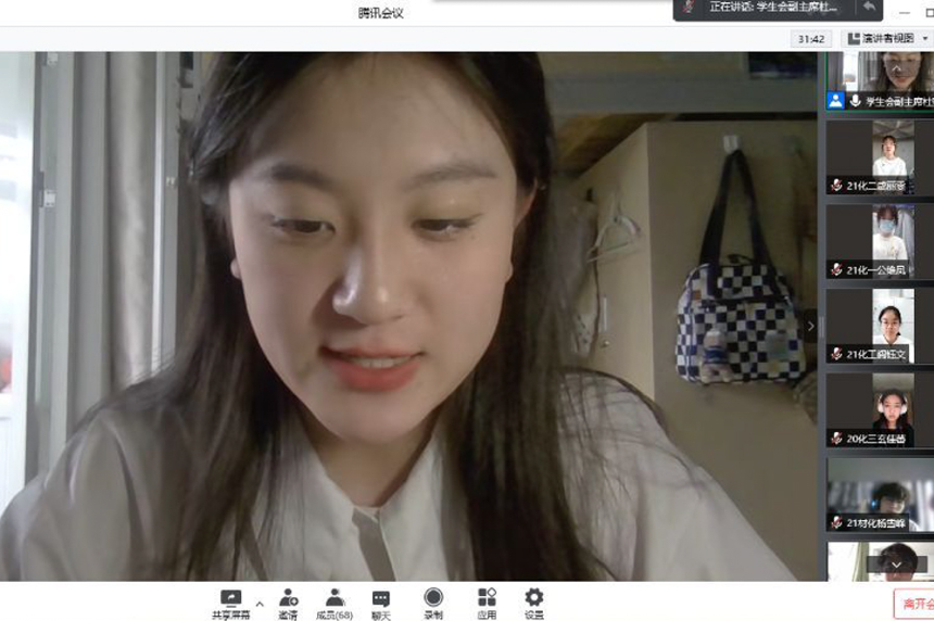 图为学生会主席杨洁作2021届学生会工作报告