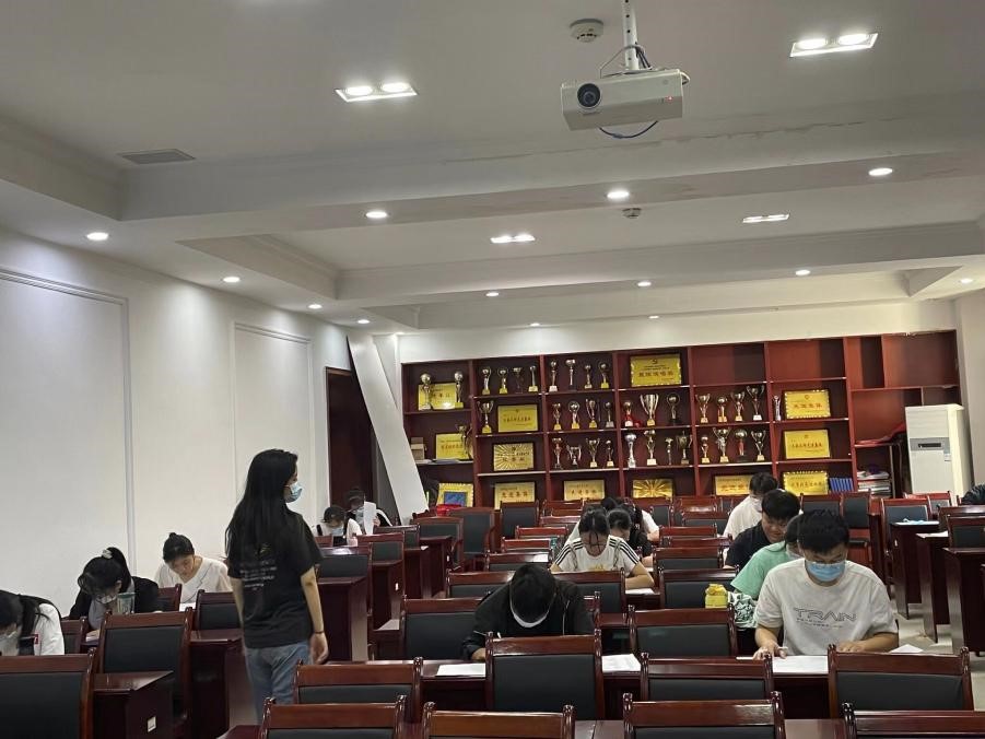 党委于化学楼226会议室进行此次党员发展对象培训班结业考试。33名党员发展对象参加本次考试,其中6名党员发展对象参加线上考试。本科生党支部书记王亚平在考场进行巡视。