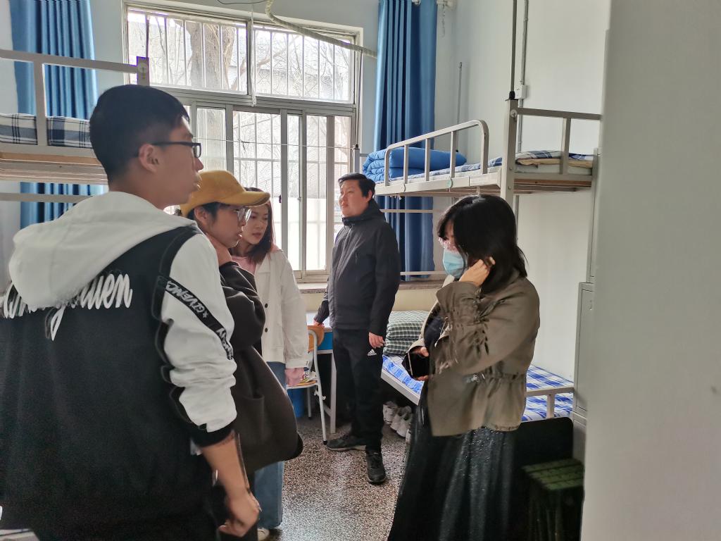 在检查过程中,辅导员与学生进行了亲切的交流,就安全用电、宿舍卫生保持及学生生活状态进行了全面的了解,并提醒学生勤开窗常通风,注意防火防盗及疫情期间的通风消毒,增强防范意识,切实保障自身安全。对于在检查过程中发现的问题,如宿舍内小仓库物品摆放问题,老师们都悉心地指出并提出整改意见。在此次检查中,师生关系融洽,交流紧密,大部分宿舍干净整洁,物品摆放整齐有序,且没有发现违章电器使用情况。