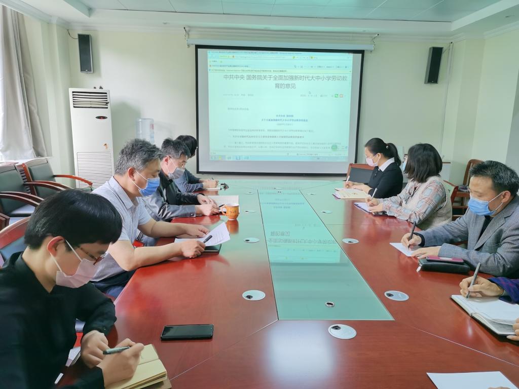 学习会上,团委书记孙金玲首先带领大家共同学习《关于全面加强新时代大中小学劳动教育的意见》。通过学习,大家对加强新时代大中小学劳动教养的重大意义、指导思想、基本原则、基本内容等有了深刻的认识。随后,赵琪指出,要在认识上再提高,党中央本次制定印发的《关于全面加强新时代大中小学劳动教育的意见》对劳动教育的重大意义、指导思想、构建体系、开展方式等重大问题作出了全面而系统的阐释和规划,是我们做好新时代劳动教育的根本遵循。同时要劳动教育落实在行动上,要深入学习领会中央精神,正确理解和认识新时代开展劳动教育所面临的各种新问题和新挑战,探索将劳动教育与本学科结合的有效途径,坚持德智体美劳“五育”并举,创造性的开展工作,形成“崇尚劳动”的校风、学风和教风,防止形式主义,确保党中央各项要求的落地落实。