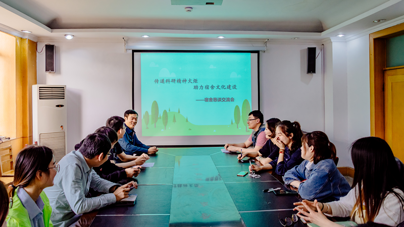 随后,在学院218会议室举行了宿舍文化节的第二项活动­“传递科研精神火炬,助力宿舍文化建设——宿舍恳谈交流会”。研究生辅导员刘海波老师、部分院研究生会同学以及各宿舍代表参加了交流会。刘海波老师详细询问了大家在日常生活科研中遇到的一些问题并提出了自己的意见和建议。同学们也就各自宿舍的现状、存在问题畅所欲言,交流会在探讨如何加强宿舍文化建设,助力科研工作的进程中达到了高潮。在交流会的最后,刘海波老师做出总结,衷心希望大家养成良好习惯,共建宿舍文化,提高宿舍学风,让健康向上的宿舍文化成为大家科研道路上坚强的精神支撑!