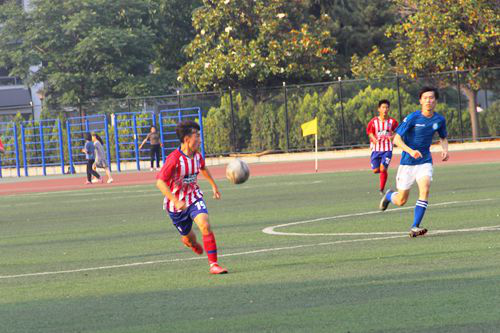 男子足球队和软件学院男子足球队展开季军争夺赛。比赛开始后,双方不断拼抢,球员们不甘示弱,球权不断发生转变。下半场比赛中ACG漫画网