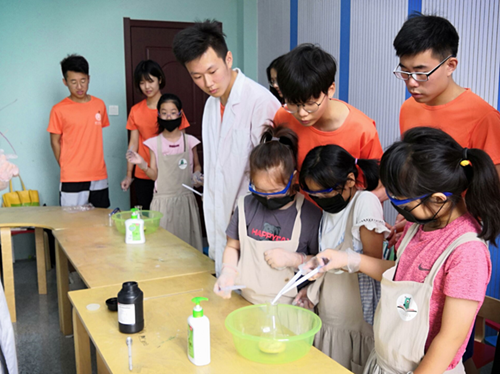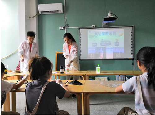 实验过程中,在小组成员的带领下,小朋友们亲自动手完成了实验,在最后课堂总结当中,小朋友们对实验开始前小组成员提出的问题进行了很好的回答。通过这堂课她们了解到了很多化学知识,也展现出对化学实验的浓厚兴趣。第一堂课圆满成功。