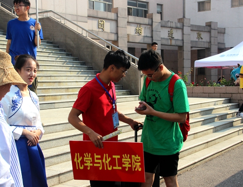 师生共同努力下,今天上午的迎新工作圆满结束。迎新工作仍在进行,化院学子将继续以良好的精神面貌和饱满的热情迎接新生,向新生们展示化院热情洋溢、积极向上的风采。