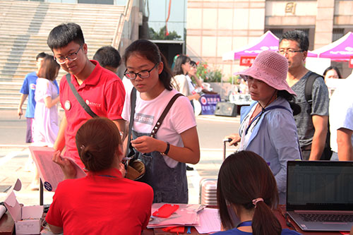 党委副书记毛永正、团委书记孙金玲、2018级辅导员冯德浩、2019级辅导员王亚平、刘鹏依然守在迎新第一线,指导迎新工作。