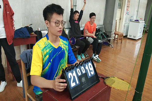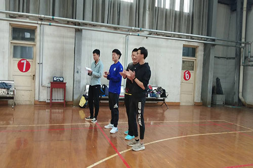 首届“迎新杯”羽毛球赛正式开始。比赛设立男子单打、女子单打、男子双打、女子双打和男女混双五个项目。比赛第一轮为小组内部单循环赛,采用一局一胜制,小组第一进入半决赛;半决赛抽签决定对手,为三局两胜制,胜者进入决赛,负者争第三名。比赛过程中,选手们全神贯注,奋勇拼搏,运用搓球、杀球、鱼跃挑球等技巧进行激烈比拼,让人连连称赞,拍手叫绝。经过一天精彩而激烈的角逐,最终决出比赛的冠军:男单冠军徐剑桥,女单冠军陈思浛,男双冠军陈峻、赵连铎,女双冠军胡静、陈婷婷,混双冠军刘静、周高杰。主席团成员依次为各项目三等奖、二等奖、一等奖选手颁奖,队长陈峻在闭幕式作最后总结。至此,2019届“迎新杯”羽毛球赛圆满结束。