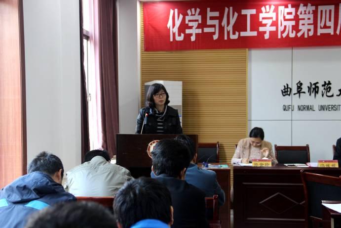 学院院长尤进茂向大会作了工作报告,报告总结了学院过去四年取得的主要成绩。他指出:近年来在学院党委的正确领导下,全面提高了教学质量,初步实现了学院可持续协调发展,有效带动了教学科研团队的建设,使学院逐步形成了以化学工程与工艺、材料化学、应用化学和制药工程五个本科专业为中心的专业核心培养体系,本科生素质教育质量得到全面提升,在本、硕专业建设、教学师资、科研成果方面取得了一系列的优秀成绩;同时也客观地分析了学院在发展过程中存在的主要问题,明确提出了今后两年的总目标:全面落实立德树人、培养创新人才的要求,积极推进本科生、研究生的理论教学、实践教学及科技创新等活动,加强科研及重点建设的工作等。