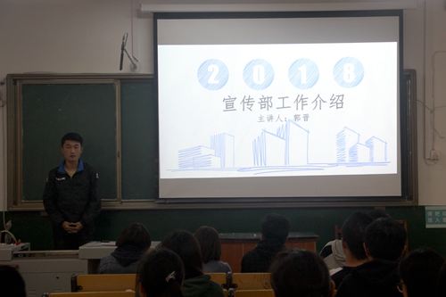 于院楼101举行学生会各部门工作答辩,学生会主席宋成凯及主席团各成员出席本次工作答辩,各部门派出代表参加。