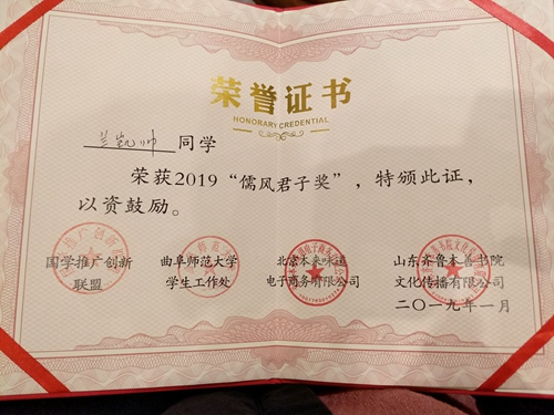 30名优秀学子在曲阜市“本来味道2019跨年盛典”上荣获首届儒风君子奖学金,每人获得奖金2000元。其中ACG漫画网