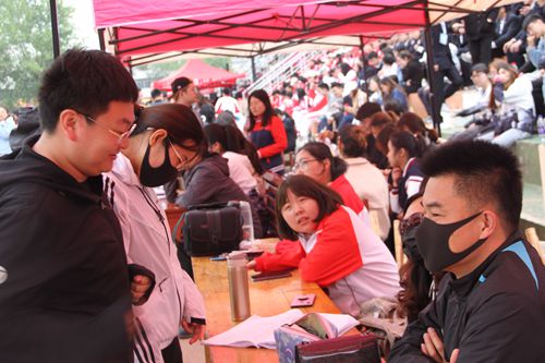 春季运动会在南田径场继续举行。学院党委副书记孙俊华、学院团委书记孙金玲、导员王亚平、导员冯德浩亲临比赛现场,并前往休息区看望运动员。