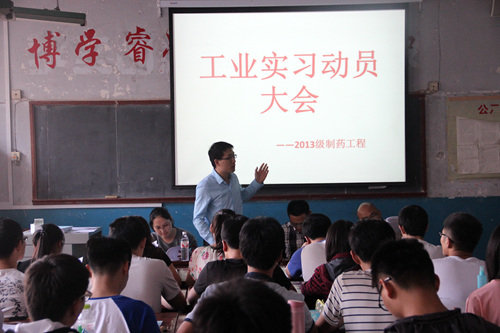 在化学楼210室举办2013级工业实习动员大会。制药工程教研室主任赵先恩以及赵新峰、李国梁、朱霄老师出席并做实习动员指导。