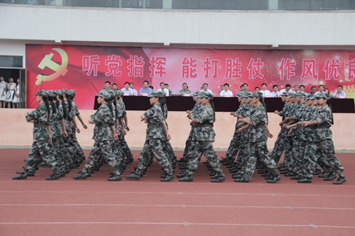 校长戚万学向军训团授旗。副校长马东骅在动员大会上讲话,代表学校向军训承训部队官兵表示诚挚谢意。学校领导希望各位新生能够居安思危,牢固树立国防意识;艰苦训练,培养良好的精神面貌和坚韧的意志品质,成为有抱负、有担当、有毅力、有体魄的青年才俊。