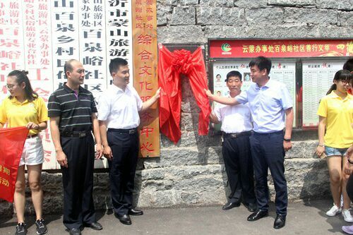 社会实践队带队老师及百泉峪村工作人员的见证下,大学生社会实践基地挂牌揭牌仪式正式举行。