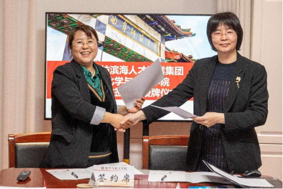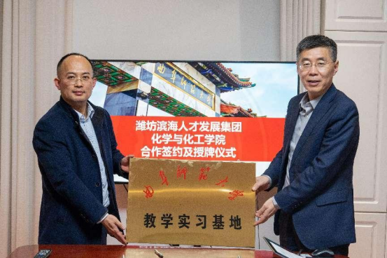 的热情接待表示感谢,详细介绍了潍坊海洋发展集团、潍坊滨海人才发展集团目前的发展情况和人才需求,并表示希望在产学研融合、学生实习实践和就业等方面进行广泛深入的交流。最后,冯院长和李晓菲部长签订了实习协议,赵书记和慈海鑫书记一起为教育实践基地揭牌。