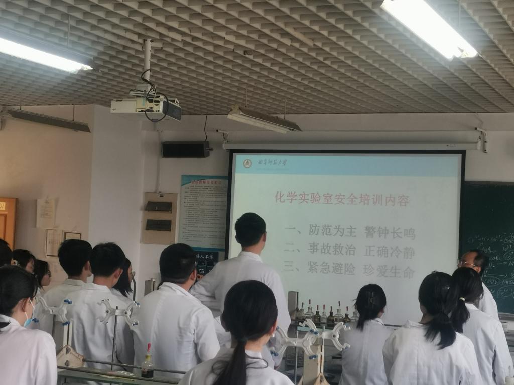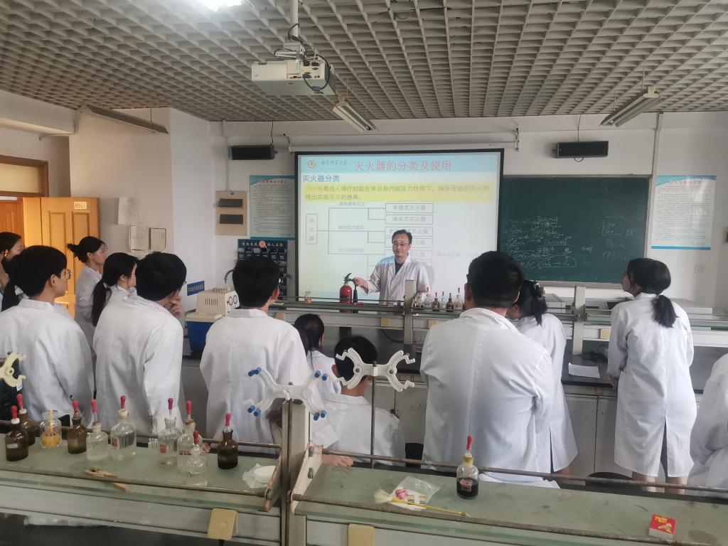 实验室安全教育和消防安全逃生演习在化学实验中心无机化学实验室举行。
