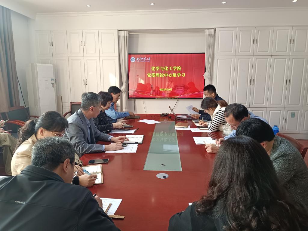 党委理论学习中心组在化学院209会议室举行了党委理论学习中心组2024年度第十一次集中学习研讨。本次学习的主要内容《习近平总书记在庆祝中华人民共和国成立75周年招待会上的重要讲话》。会议由学院党委书记赵琪主持,党委理论学习中心组成员参加。