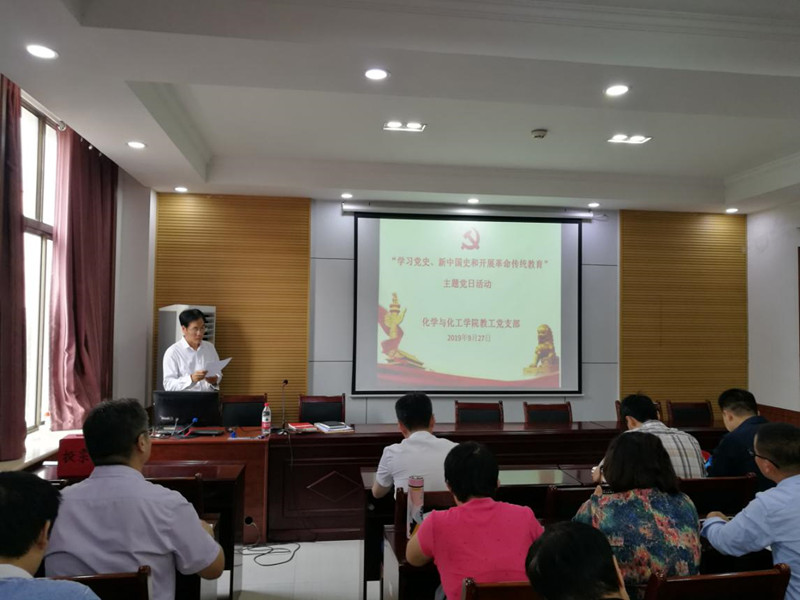 教工党支部在化学楼226会议室开展了“学习党史、新中国史和开展革命传统教育”系列主题党日活动。会议由教工党支部书记李平主持。