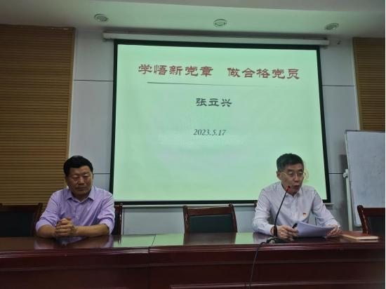 张立兴从新党章重大历史贡献入手,对新党章鲜明时代特性进行解读,最后指出新时代党员要强化理论学习、强化政治意识、强化责任担当,努力做合格共产党员。