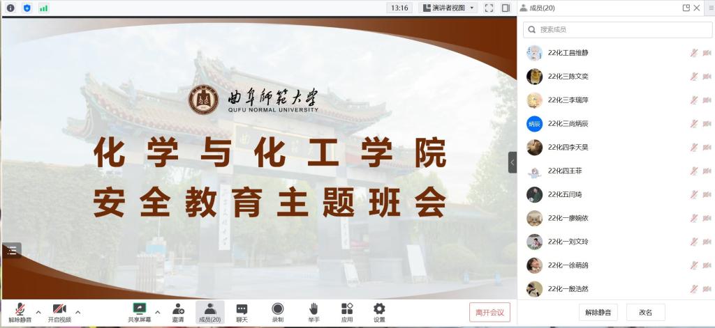 开展了新学期安全教育主题班会。会议由化院各年级辅导员主持,学院全体同学参与。