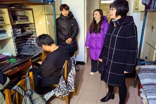 走访学生宿舍期间,老师们亲切询问了同学们对于新学期的适应情况,回答了同学们学习生活方面遇到的问题。在与同学们沟通交流过程中,老师们叮嘱学生们要开窗通风,并注意保持卫生整洁,营造舒适的生活学习环境;也叮嘱同学们注意安全用电,节约水电;老师们还建议同学们多运动,提高身体素质,保持良好积极的心态,鼓励同学们充分利用大学四年的青春提高自己,享受生活。
