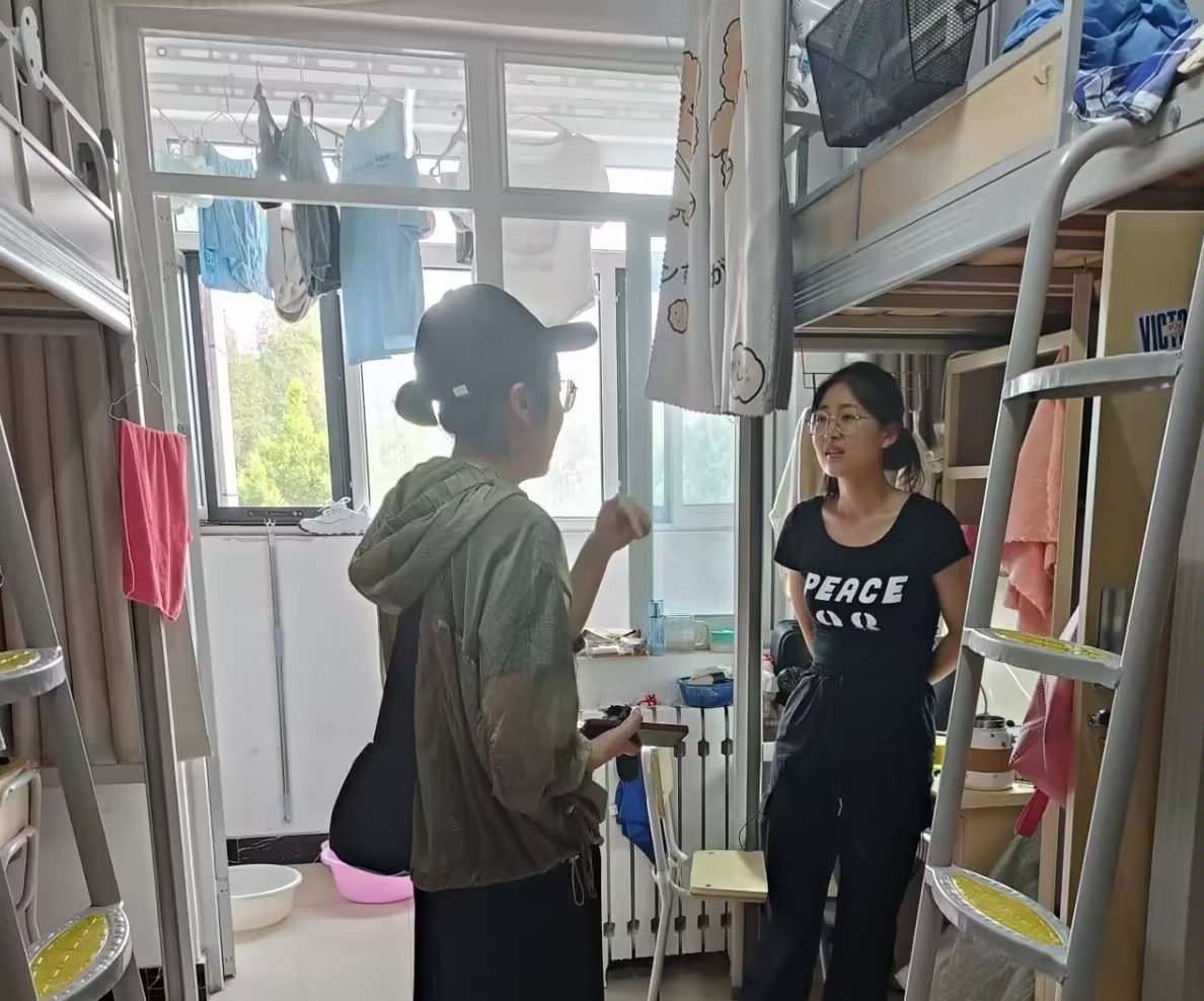 图为老师走访宿舍