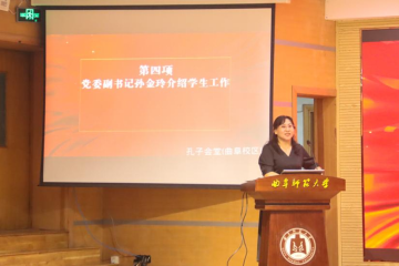 副书记孙金玲从学院的学生工作队伍、学生组织和社团活动、学生奖助学金体系等几方面介绍了学院学生工作的基本情况。
