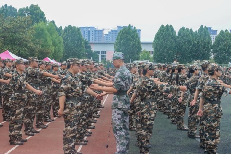图为学院领导视察新生军训