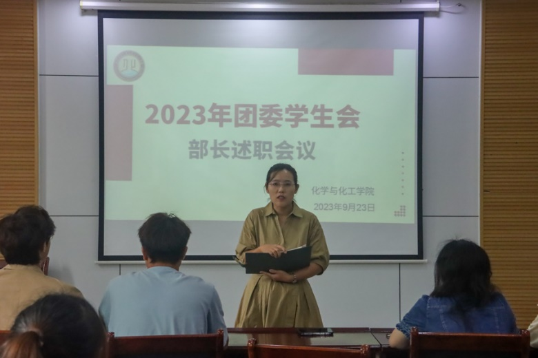 会议伊始,各个部门依次报告述职,内容包含了上学期所开展的活动,以及新学期的工作规划。最后,由团委书记王亚平进行总结讲话,王亚平老师肯定了各部门工作取得的成绩,新学期应继续稳抓实干,并对各部门提出了几点要求:部门之间要进一步加强合作交流、所办活动应体现化院特色并提高宣传力度,最后期待各部门共同努力,新学期工作迈上新台阶。本次会议到此圆满结束。