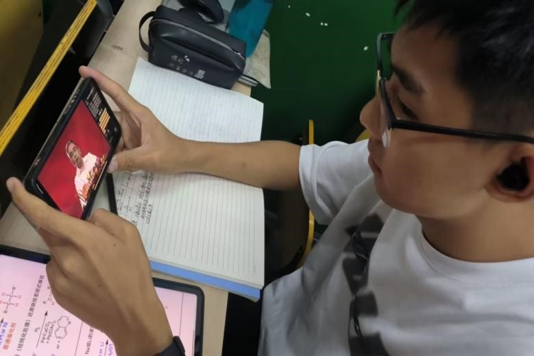 图为同学在观看讲座直播