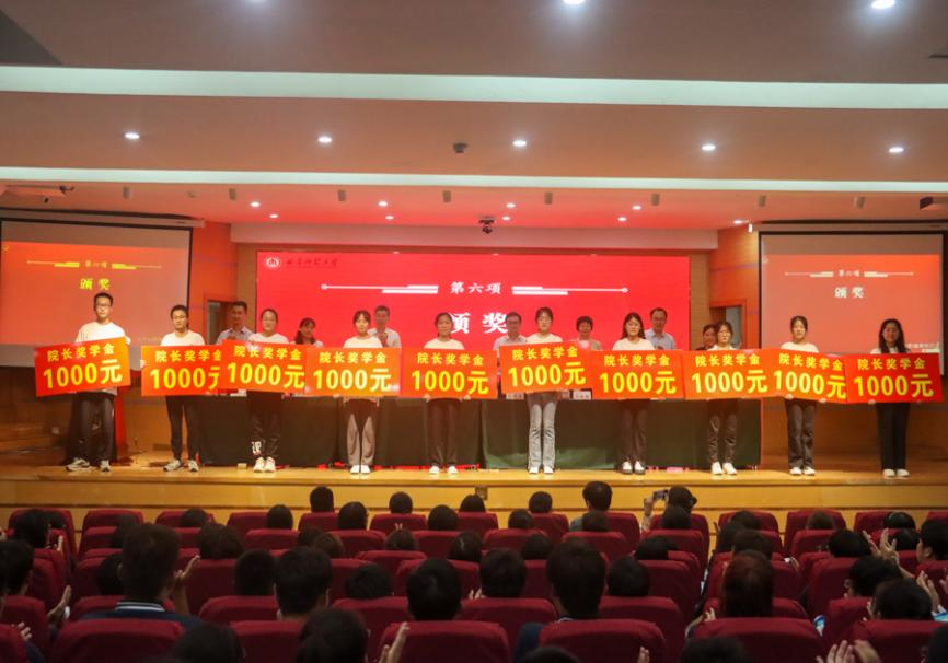 图为主席台领导老师为院长奖学金获得者颁奖