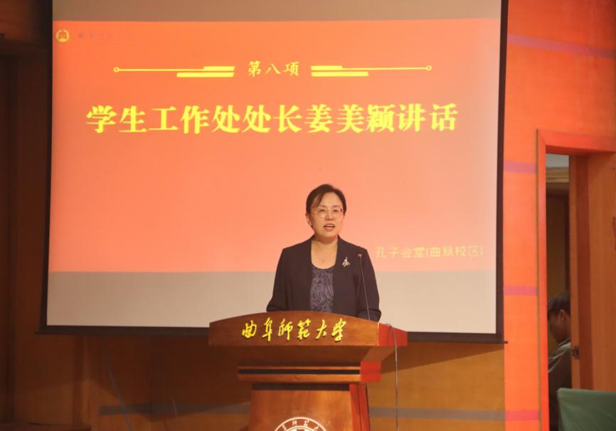 图为学生工作处处长姜美颖老师讲话