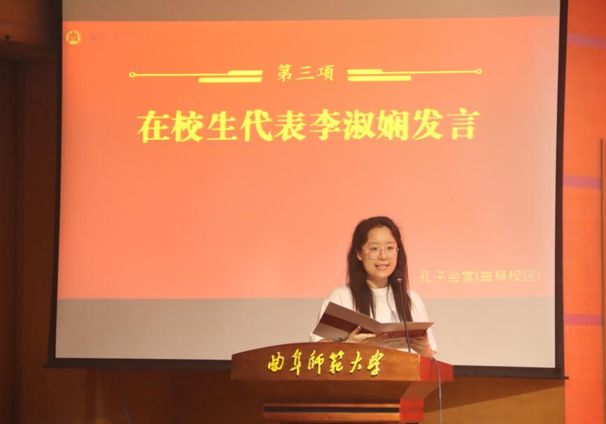 图为在校生代表李淑娴讲话