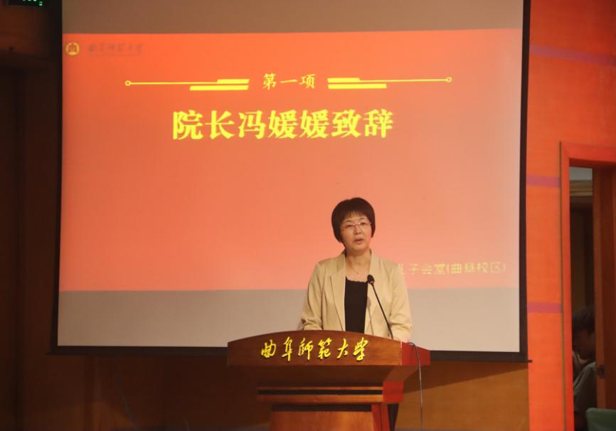 典礼伊始,院长冯媛媛代表全院师生对2023级同学的到来表示热烈的欢迎和衷心的祝贺,带领同学们回顾了学校和学院的发展历程及办学成就,并鼓励同学们把握好大学时光,孜孜以求,追求卓越。