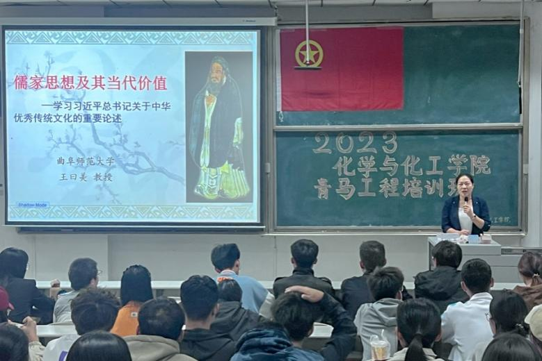 于10月28日在综合楼101教室开展2023-2024学年“青马工程”大学生骨干培训班第一讲。本次培训由孔子文化研究院王曰美教授主讲,学院“青马工程”大学生骨干培训班全体学员参加。会议由学院团委书记王亚平主持。