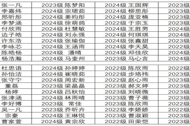 图为部分获奖同学名单