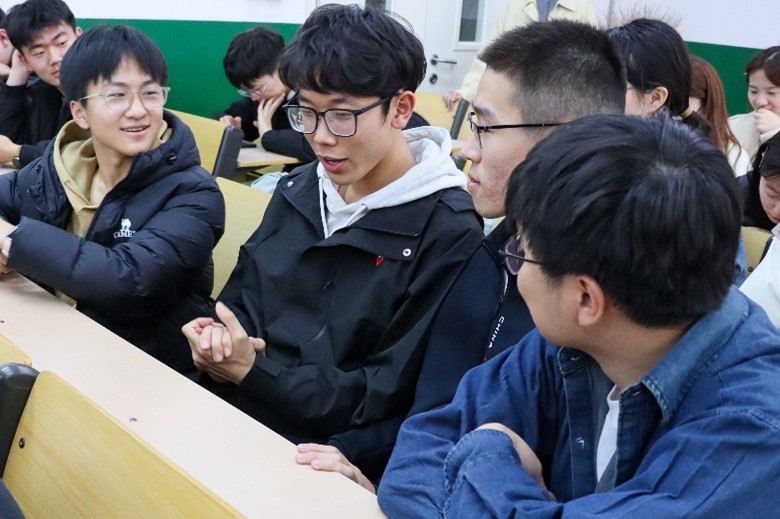 图为学员们与学生代表讨论学习经验