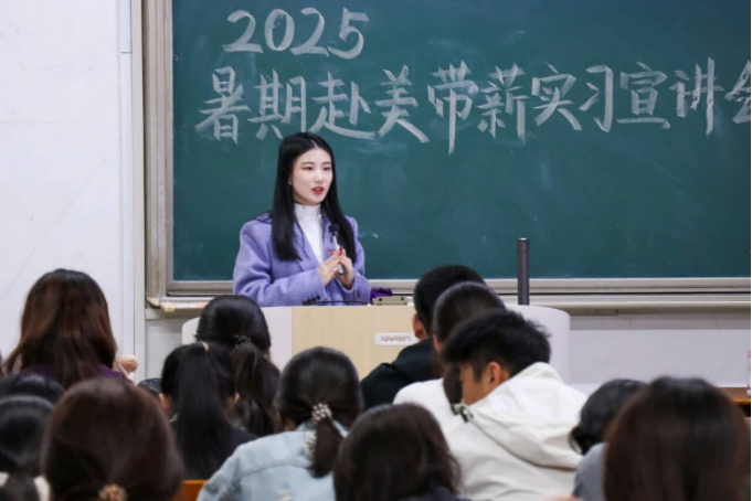 于3月21日在综合教学楼103举办了2025暑期赴美带薪实习宣讲会。此次宣讲会由学院2024级辅导员梁梦琦主持,IEC国际文化交流中心项目负责人韩瑾凤主讲。