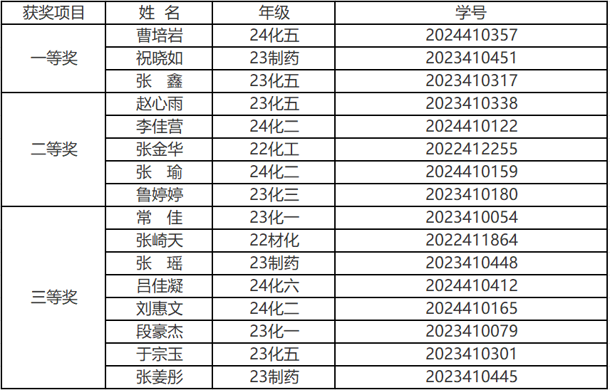 图为部分获奖名单