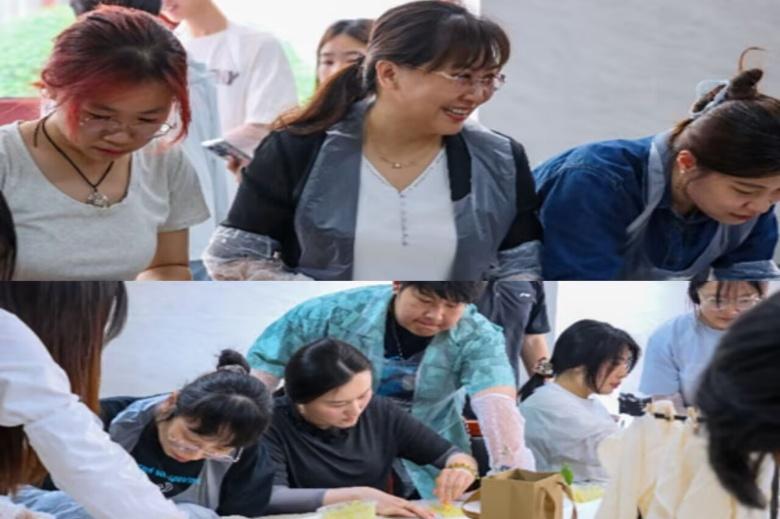 团委宣传部承办,学院全体辅导员沉浸式体验扎染与拓印技艺,从千年非遗中感悟中华工匠智慧,在经纬交织间探寻文化传承之道。