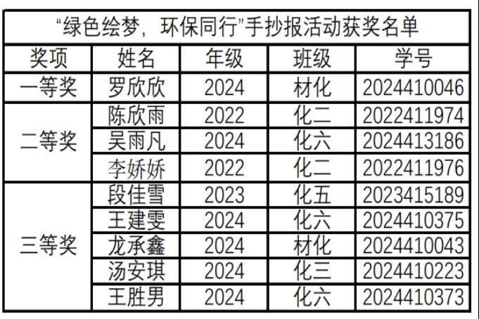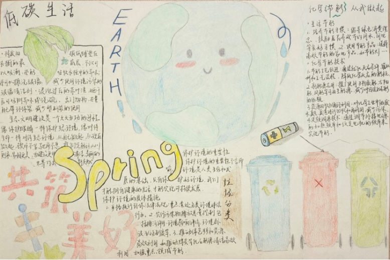 活动自启动以来,同学们踊跃参与,共收到投稿作品39篇,学子们以笔绘绿,从“绿色科技”的前沿探索到“生态校园”的立体规划,再到“低碳生活”的细节实践,用线条与文字编织环保蓝图,每一份作品都饱含对环保的热忱与担当。经评审,罗欣欣获一等奖,陈欣雨、吴雨凡、李娇娇获二等奖,段佳雪、王建雯等五人获三等奖。