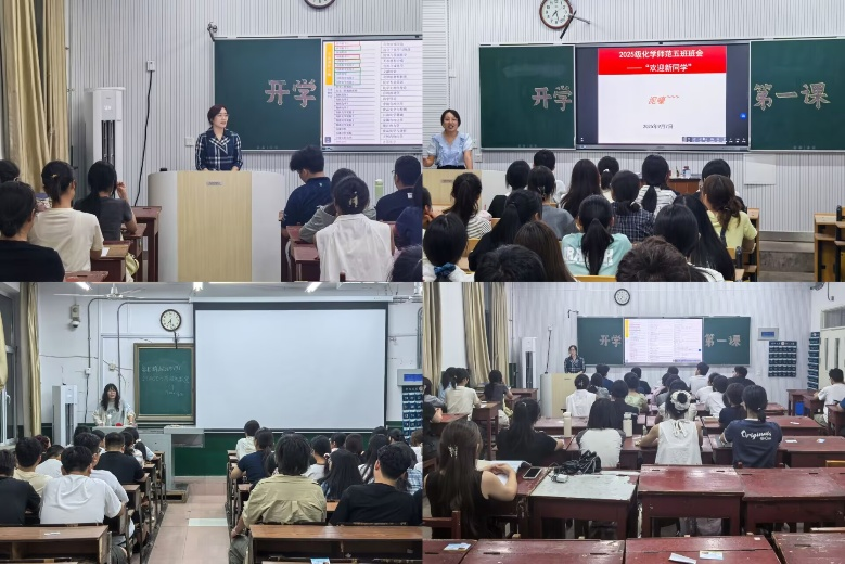 2025级新生辅导员王亚平和曾川及各班班主任于9月7日在各班级召开了开学第一课。