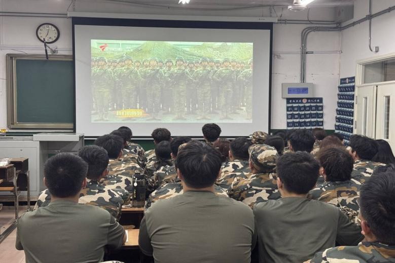 活动伊始,各班集体组织观看了九三阅兵视频,新生直观感受到强大的国防力量与军队风采。随后,各班学长辅导员围绕“解码国防力量,青春挺膺担当”主题开展团会,不仅为新生深度解读我国国防建设的辉煌成就,还结合抗战胜利的历史,清晰阐述了国防稳固对民族独立、国家发展的关键意义,进而引导新生厚植家国情怀,明确新时代青年在国防建设中应肩负的责任。