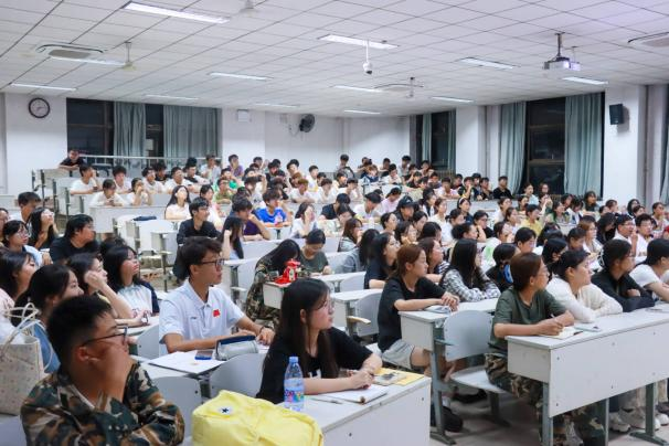 图为新生认真听讲